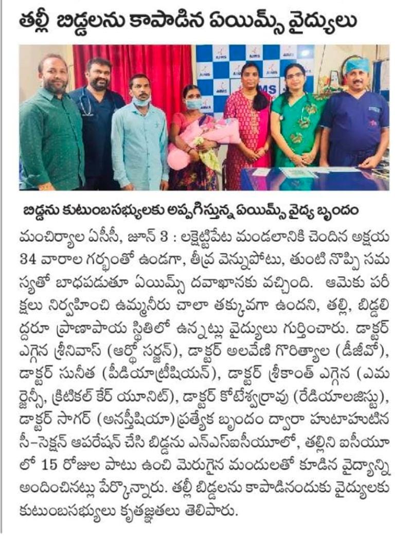 We are one of the largest & the best Multi & Super Specialty Hospitals in the North Telangana.. AIMS HOSPITALS, MANCHERIAL